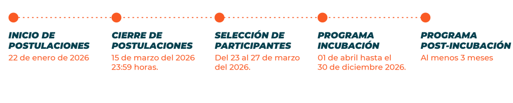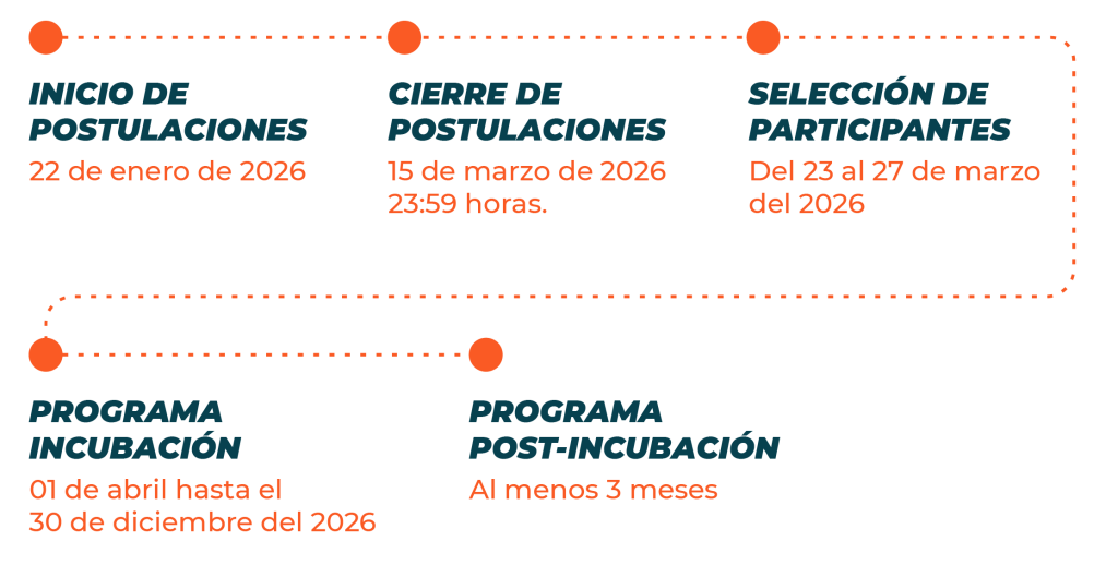 El Programa de Incubación tiene una duración de 9 meses, con posibilidad de continuar, por al menos 3 meses adicionales, a través de un Programa de Post-Incubación.